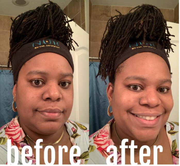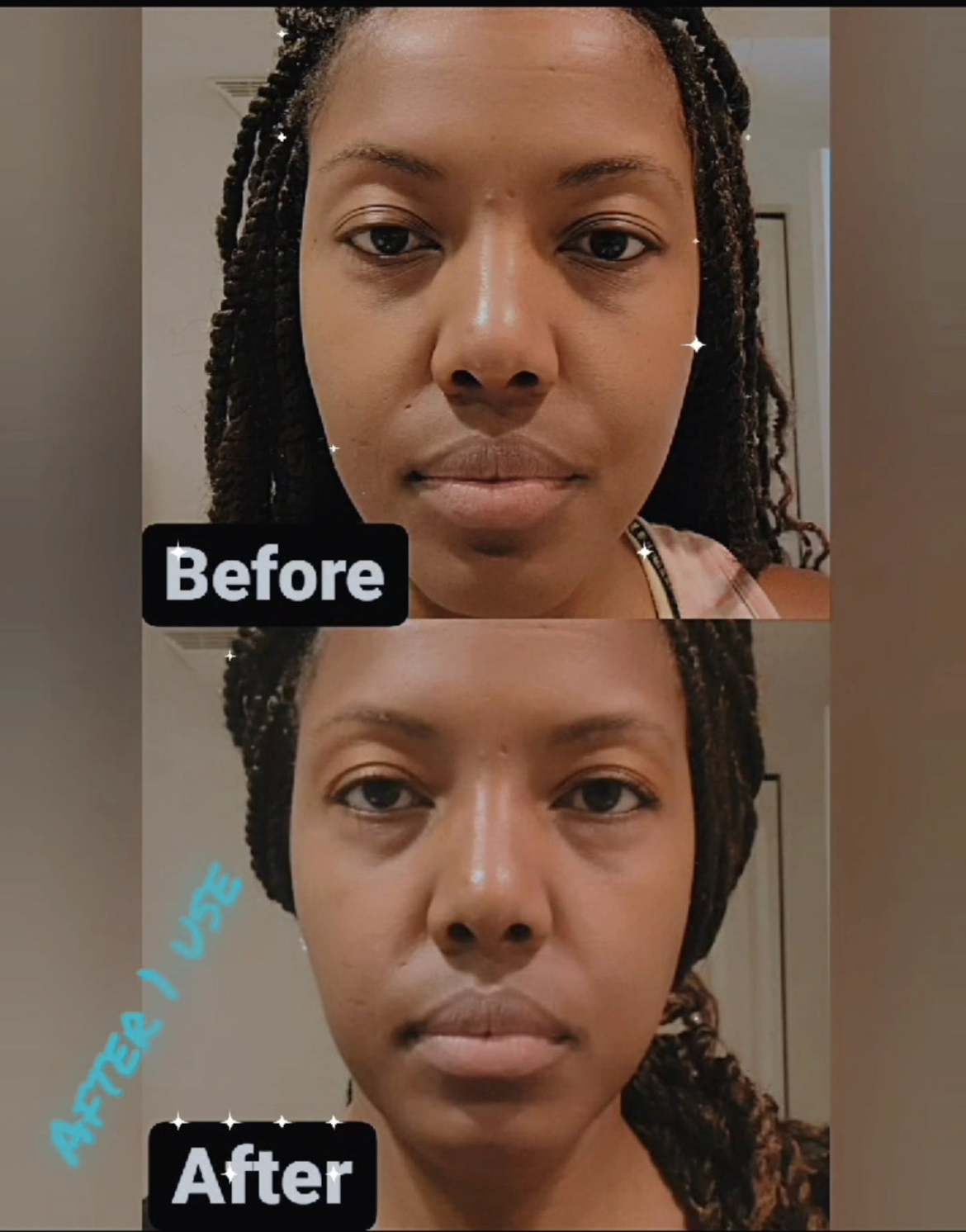 "I am definitely loving the ease with which I was able to apply it with the handy dandy brush. I love that it comes with a headband to keep my dreads in check and I love the sparkleI have afterwards. My natural glow is awesome but anything that can give that a boost is an A+ for me .