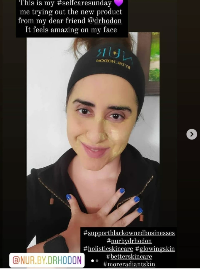 "This is my #selfcaresunday...me trying out the new product of my dear friend @drhodon. It feels amazing on my skin. Enjoying the extra glow."